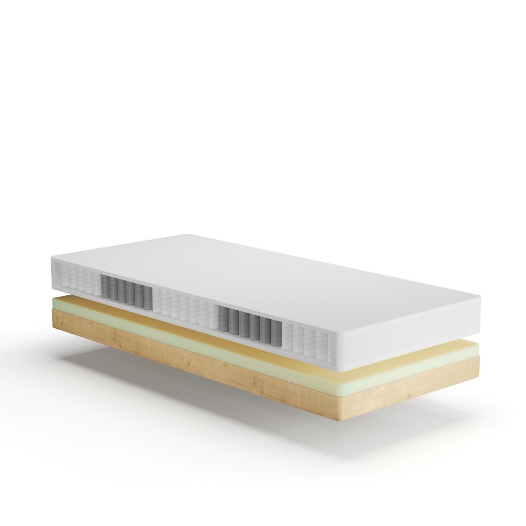 Topmadrassen er fremstillet i 40 mm polyetherskum, som giver en jævn og formstabil overflade. Materialet er praktisk, ventilerende og langtidsholdbart og passer perfekt til sengens faste komfortprofil. Polyetherskum sikrer en rolig og stabil liggeflade uden at synke for langt ned, og den faste struktur giver kroppen den støtte, den har brug for nat efter nat.
