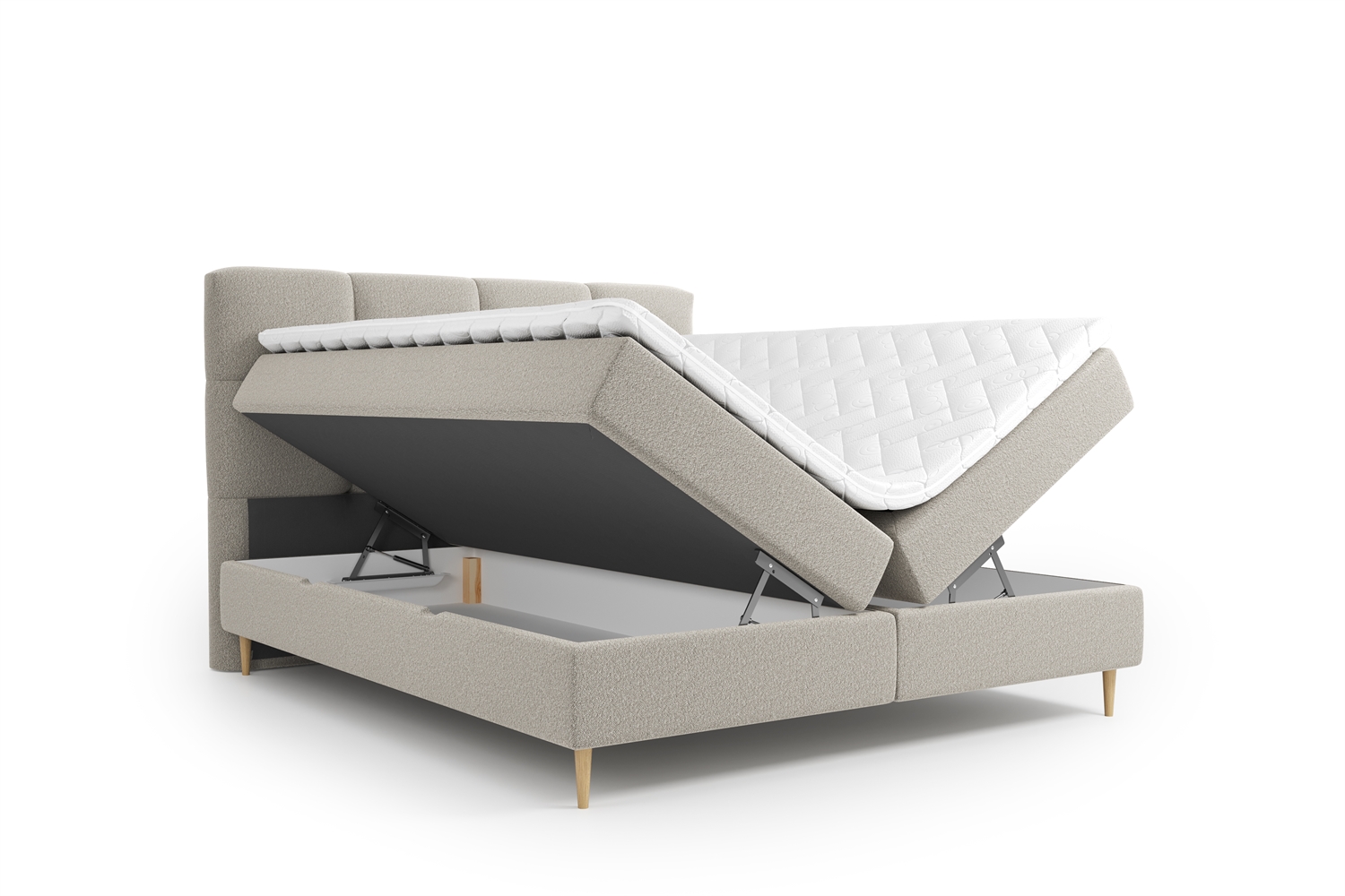 Under madrassen gemmer sig en 20 cm høj opbevaringsboks, som let kan åbnes og lukkes. Her får du rigelig plads til ekstra dyner, puder, tøj eller andre genstande, du vil gemme af vejen. Det er en oplagt løsning til dig, der bor småt eller bare ønsker at udnytte pladsen i soveværelset optimalt.