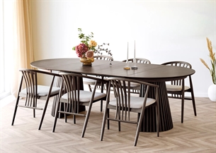 Spisebordssæt i egefiner og massivt træ