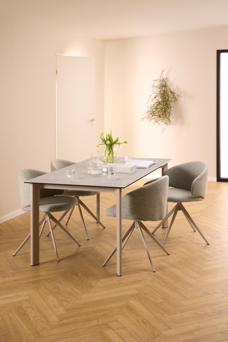 Palermo spisebordet kombinerer et eksklusivt look med praktisk funktionalitet. Bordpladen er fremstillet i grå Anista ru keramik, som både er elegant og utroligt slidstærkt. Stellet i gråt, ru pulverlakeret stål understreger det moderne design og sikrer stabilitet. Med en længde på 160 cm er Palermo spisebordet ideelt til både daglig brug og gæstemiddage.