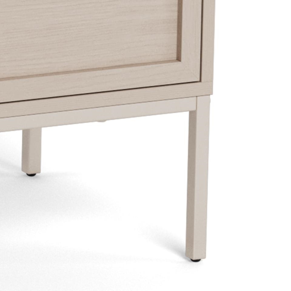 Palmdale kommoden er udstyret med en praktisk push-to-open funktion, der gør det nemt at åbne skufferne uden synlige greb. Dette understreger kommodens minimalistiske udtryk og bidrager til et rent og moderne design.