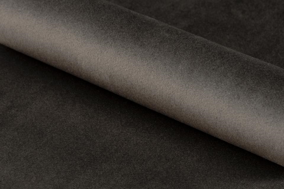 Stolen er beklædt med Vic stof i en smuk gråbrun farve, som giver et varmt og roligt udtryk. Stoffet har et let velourlook, der tilfører dybde og et eksklusivt præg til indretningen.