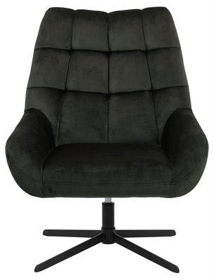 Kombinationen af det bløde velourlook og det sorte stel giver et moderne og eksklusivt udtryk. Den firkantede syning tilfører struktur og gør stolen til et dekorativt element i din indretning.