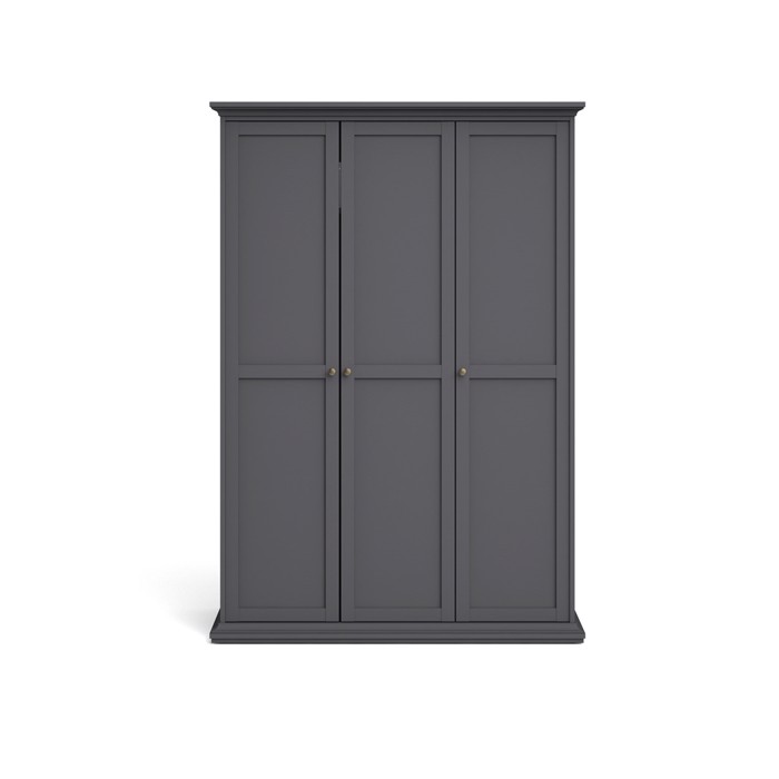 Paris Klædeskab | 3 låger | GråParis Garderobeskab med låger. 5 hylder og 1 bøjlestang er der rigelig mulighed for