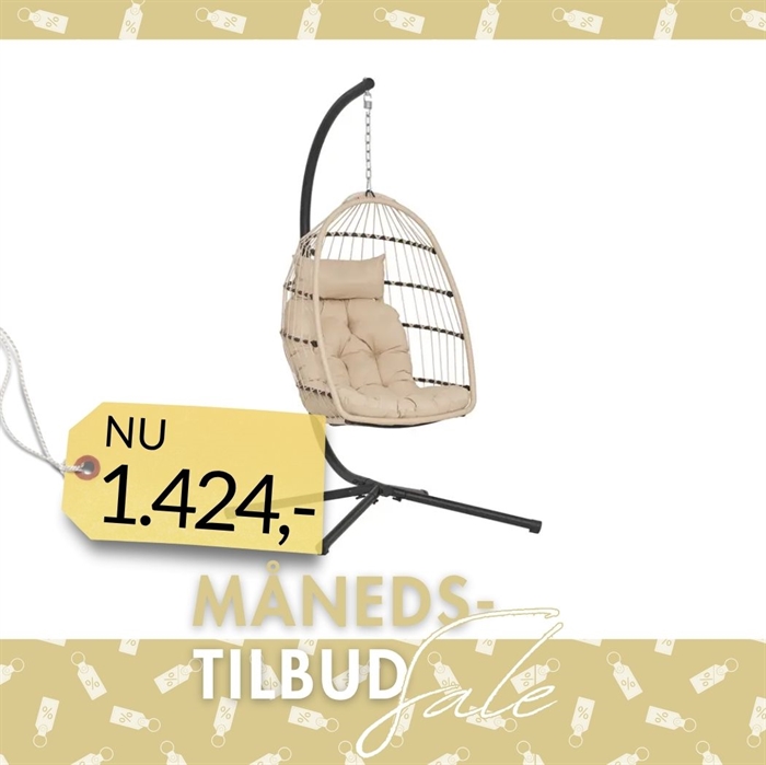 Beige, grå og sort hængestol til rolig uderumsindretning