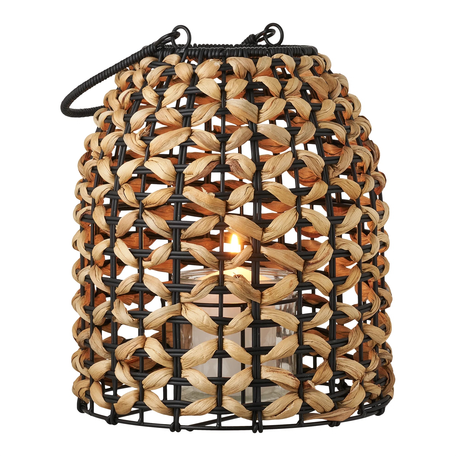 Den flettede overflade i vandhyacinth og polyrattan skaber et naturligt spil i lyset, når du placerer et stearinlys eller LED-lys i lanternen. Den indvendige glasindsats beskytter mod vind og sørger for, at lyset brænder roligt og sikkert. Pinto lanterne er både praktisk og dekorativ – lige dele belysning og interiørdetalje.