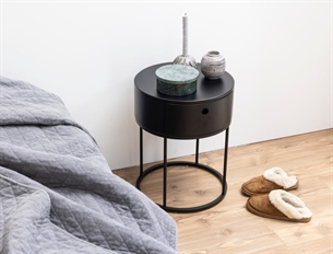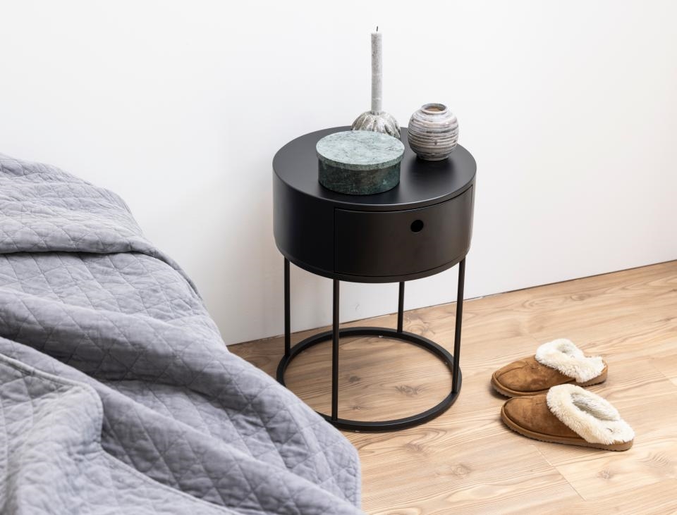 Polo natbord er designet med praktisk opbevaring i fokus. Den rummelige skuffe giver plads til småting, mens den runde bordplade er perfekt til natlamper, bøger eller andre nødvendigheder. Det kompakte design gør natbordet velegnet til både små og store soveværelser.