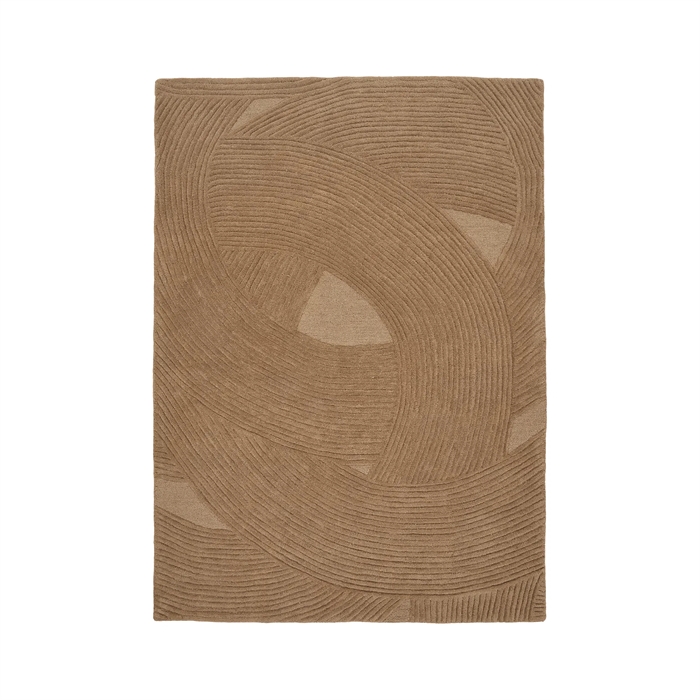 Pune tæppe er et eksklusivt og indbydende tæppe, der tilfører varme, komfort og et naturligt udtryk til indretningen. Det håndtuftede tæppe i brun uld skaber en behagelig atmosfære i rummet og fungerer som et roligt fundament i både stue, spisestue og soveværelse.