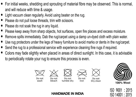 Den håndtuftede teknik giver tæppet et eksklusivt præg og en blød struktur, samtidig med at uldens naturlige egenskaber sikrer lang holdbarhed.
