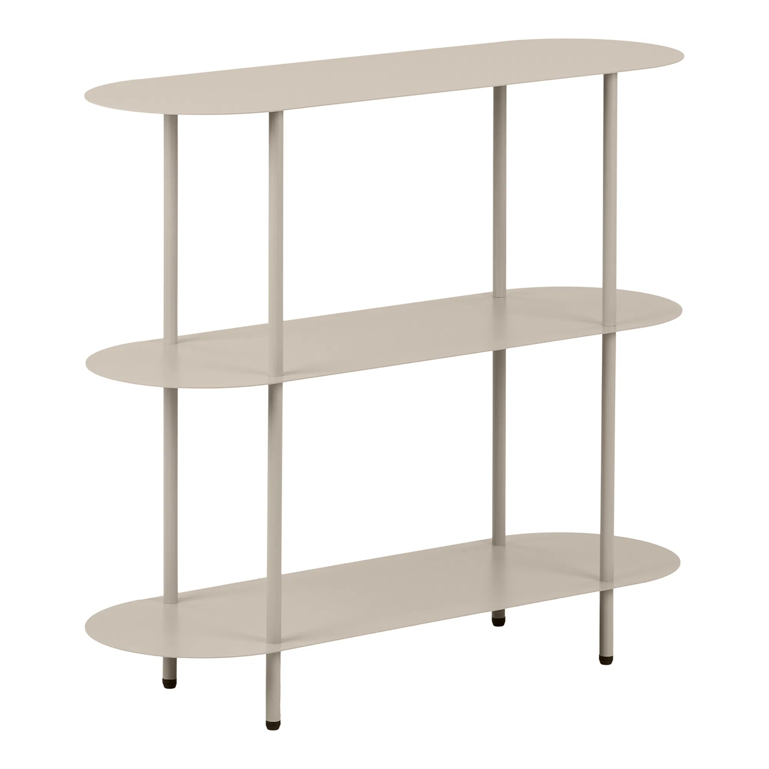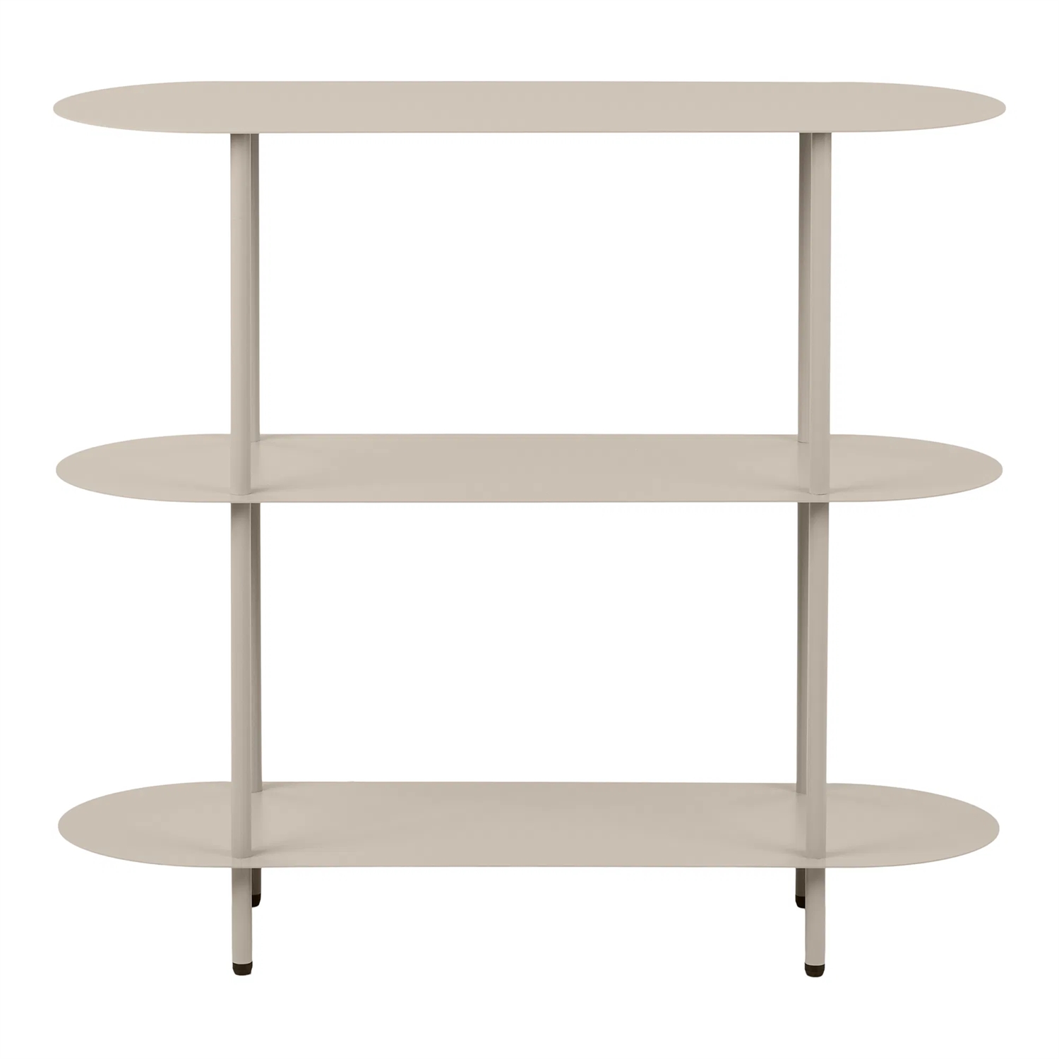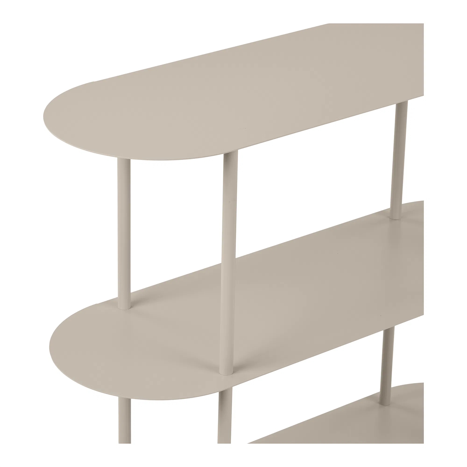 Rieti reol er fremstillet i metal, som giver en stabil konstruktion og et let, elegant udtryk. Den sandfarvede overflade tilfører varme og ro og gør reolen nem at integrere i både moderne og nordiske hjem.