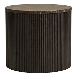 Den mørkebrune marmor-look overflade tilfører varme og eksklusivitet til indretningen. Kombinationen af det klassiske marmorudtryk og den kompakte, runde form gør bordet til et tidløst møbel, der både fungerer alene eller sammen med andre borde i forskellige størrelser for et moderne sæt-look.