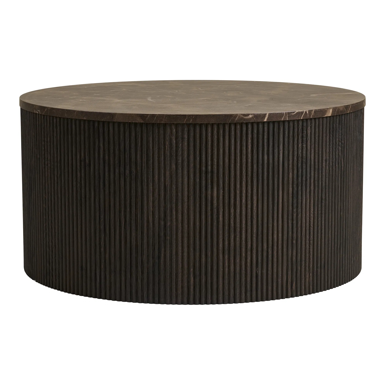 Rota sofabord – rundt sofabord i mørkebrun marmor-look (Ø80 × H40 cm)