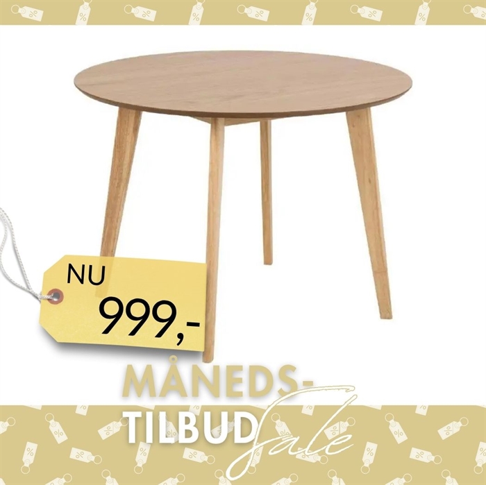 Roxby spisebord - Ø 105 cm - EgRoxby Rundt til en god pris Bordplade i ege-finer, lak. Stellet er gummitræ, egebejdset