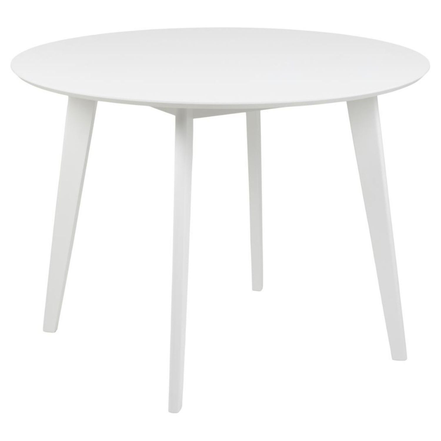 Roxby rundt spisebordssæt Ø105 cm i hvid med 4 stole er et stilrent og moderne sæt, der passer perfekt til lyse og minimalistiske hjem. Den hvide finish og den runde form skaber en let og indbydende spiseplads.
