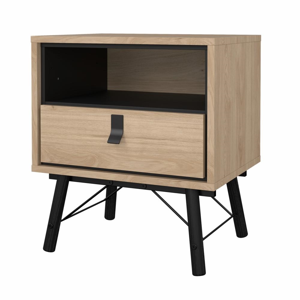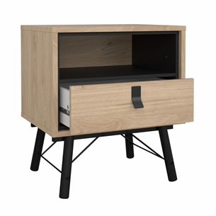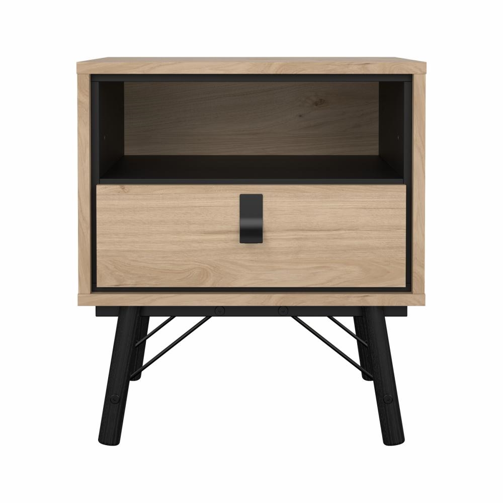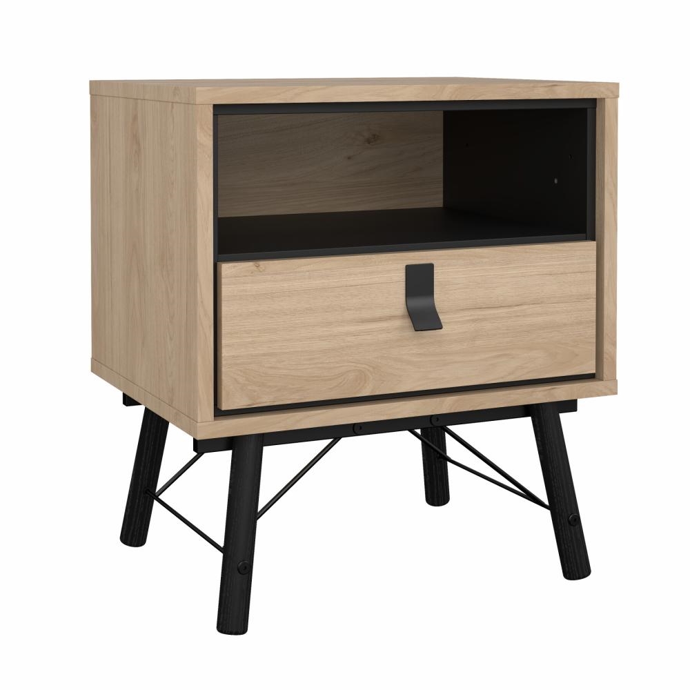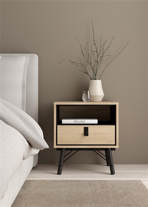 Dette Ry sengebord er designet med en praktisk skuffe samt et åbent rum, hvilket giver fleksible opbevaringsmuligheder. Skuffen er ideel til opbevaring af mindre genstande som opladere, briller eller personlige ejendele, mens det åbne rum giver nem adgang til bøger, magasiner eller dekorative elementer.