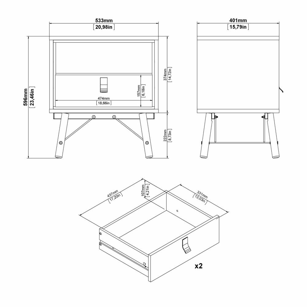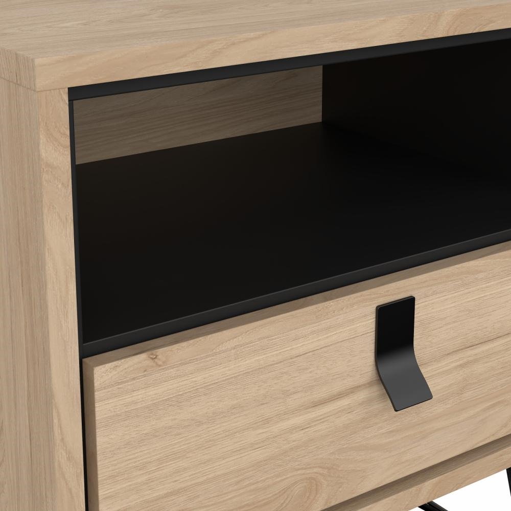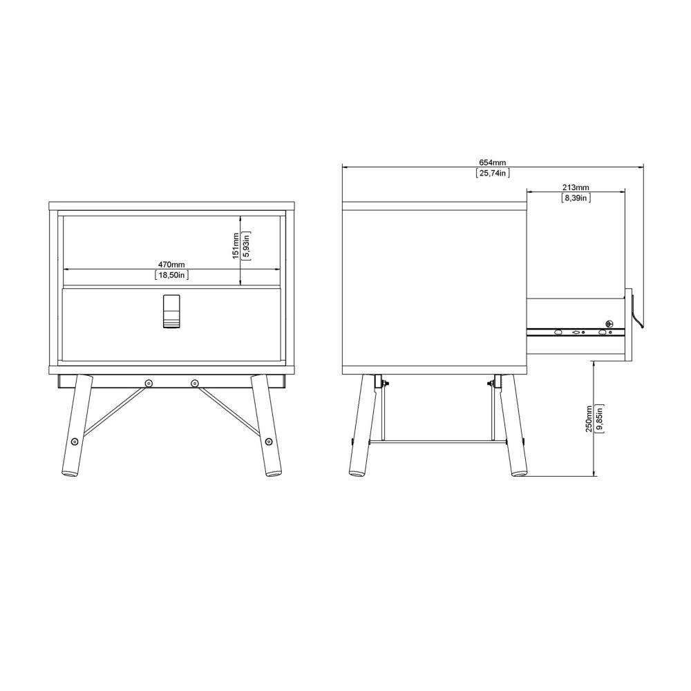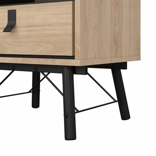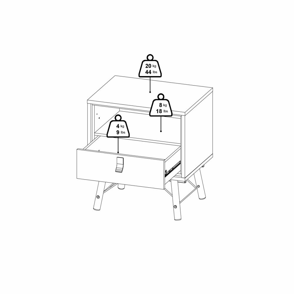 Dette Ry sengebord er designet med en praktisk skuffe samt et åbent rum, hvilket giver fleksible opbevaringsmuligheder. Skuffen er ideel til opbevaring af mindre genstande som opladere, briller eller personlige ejendele, mens det åbne rum giver nem adgang til bøger, magasiner eller dekorative elementer.