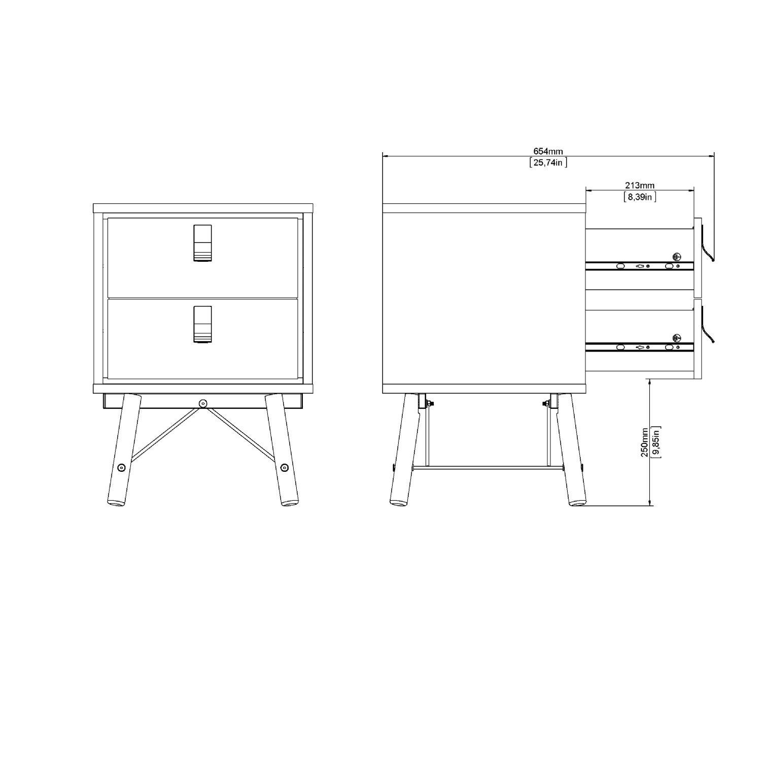 Dette Ry sengebord er indrettet med to rummelige skuffer, som giver god opbevaringsplads til bøger, opladere, briller og andre nødvendigheder, du gerne vil have tæt på sengen. Den høje konstruktion sikrer nem adgang til både skuffer og bordplade.