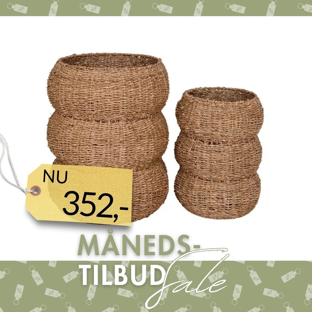 Gør din opbevaring smuk og praktisk med dette sæt kurve i søgræs. Bestil nemt online hos Møbellageret og få hurtig levering direkte til din dør.
