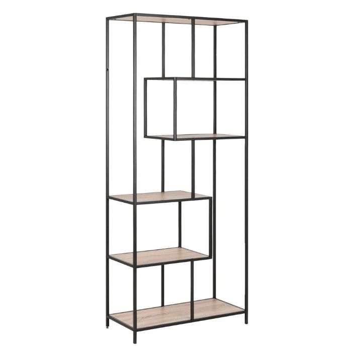Seaford Reol er et moderne opbevaringsmøbel, der forener industrielt design med naturlig elegance. Rammen og stellet er udført i mat sort ru pulverlakeret stål, hvilket sikrer en robust og holdbar konstruktion. De 5 hylder er lavet af Sonoma eg ru papir og er arrangeret i en asymmetrisk opsætning, som tilfører møblet et unikt og dynamisk udtryk.