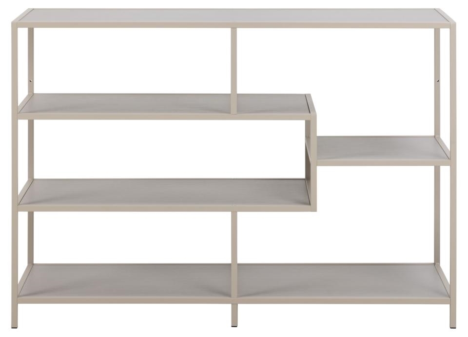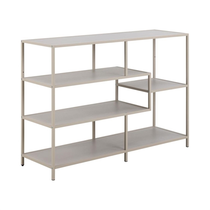 Seaford reol 114x78 cm i grå med asymmetrisk design er en moderne og funktionel reol, der kombinerer stilrent design med fleksibel opbevaring. Den lave højde og den dynamiske opbygning gør den ideel til både stue, kontor og entré.
