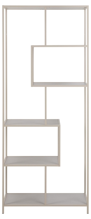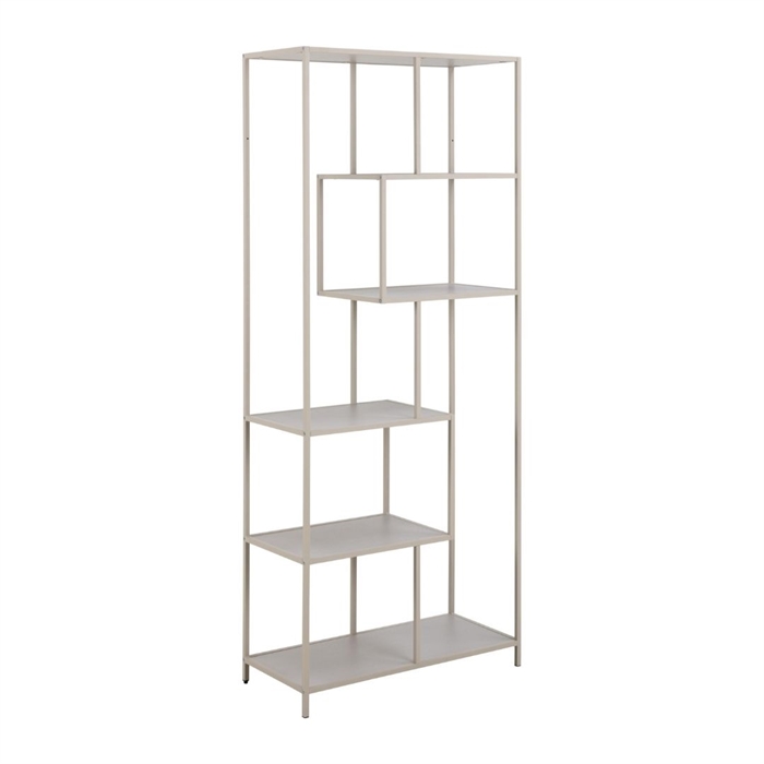 Seaford reol 77x185 cm i grå med asymmetrisk design er en moderne og funktionel reol, der kombinerer praktisk opbevaring med et stilrent og dekorativt udtryk. Den høje form og unikke opbygning gør den til et iøjnefaldende element i din indretning.