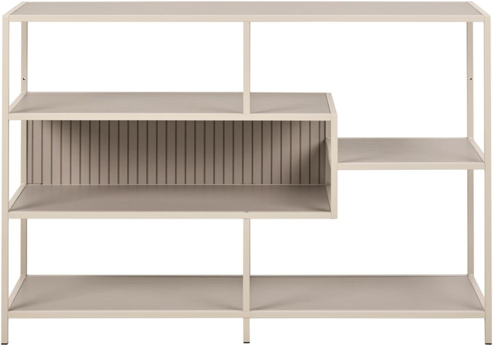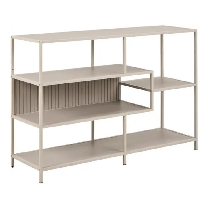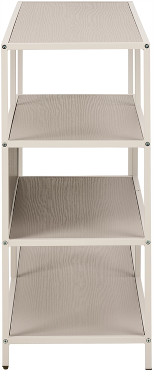 Seaford Reol er fremstillet med en robust ramme og stel i grå ru pulverlakeret stål, der giver et solidt og holdbart fundament. De 4 hylder er lavet af grå ru melamin, der giver et stilrent udseende og samtidig gør reolen let at vedligeholde. Den asymmetriske opsætning og det vendbare bagpanel giver mulighed for at tilpasse reolen efter din indretningsstil, hvilket gør den både funktionel og alsidig.