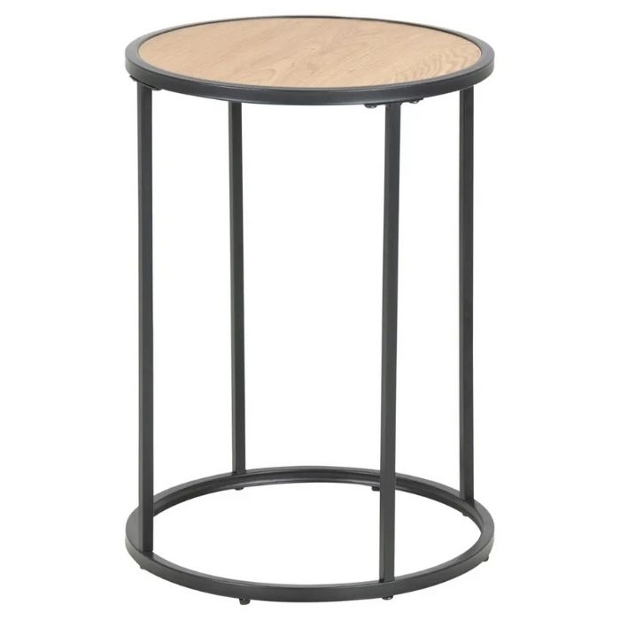 Seaford Rund Hjørnebord er et moderne og stilrent møbel, der kombinerer naturlige materialer med et industrielt præg. Toppen er fremstillet i mat vild eg ru papir, hvilket giver en varm og organisk overflade, der samtidig er let at rengøre. Stellet er udført i mat sort ru pulverlakeret stål, som sikrer en robust og stabil konstruktion.
