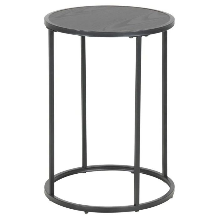 Den sorte askemelamin-overflade skaber en elegant og moderne æstetik, mens det sorte pulverlakerede stålstel tilføjer et råt industrielt touch. Kombinationen af materialer og den runde form giver bordet et harmonisk udtryk, der passer ind i både skandinaviske, industrielle og minimalistiske interiører.