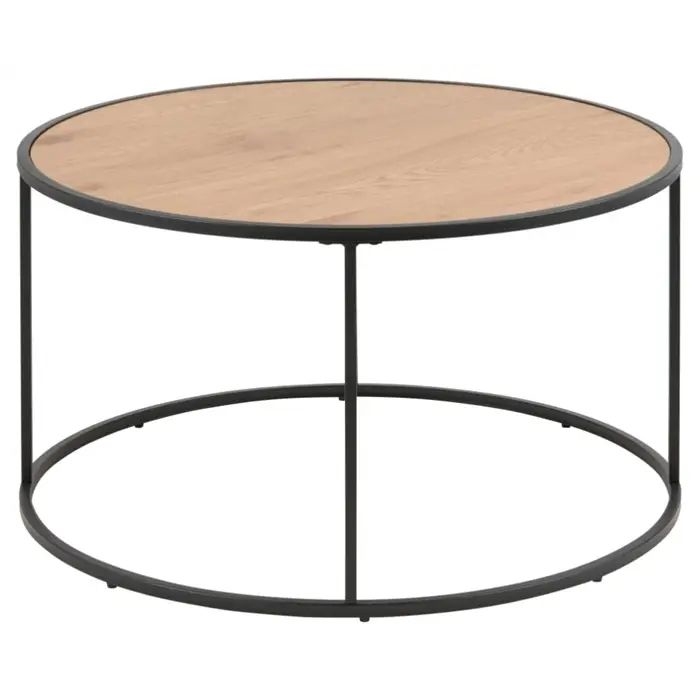 Forestil dig en moderne stue, hvor Seaford Rund Sofabord skaber en elegant og indbydende atmosfære. Den naturlige finish i vild eg kombineret med det moderne stålstel danner et unikt møbel, der både imponerer visuelt og tilbyder praktisk anvendelse.