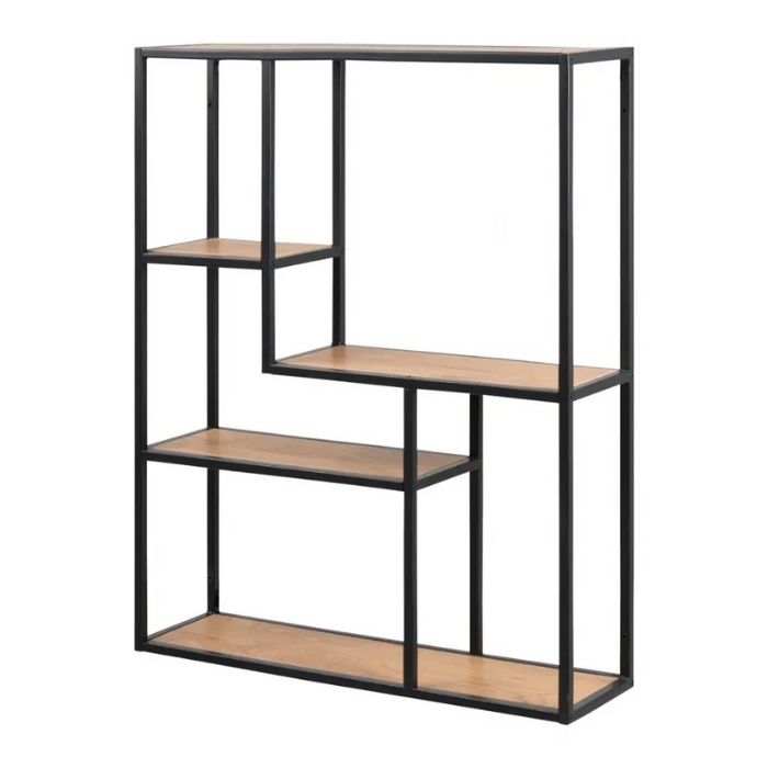 Seaford reol kombinerer et moderne industrielt look med varme, naturlige elementer. Det mat sort pulverlakerede stål skaber en solid base, mens de mat vild eg hylder med ru papir finish tilfører et elegant og tidløst præg. Den asymmetriske opsætning giver reolen et unikt og kunstnerisk udtryk, som let kan integreres i både moderne og klassiske indretningskoncepter.