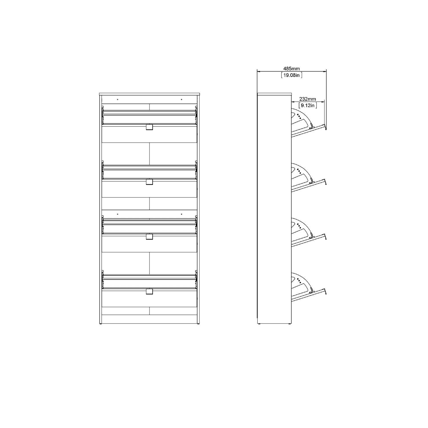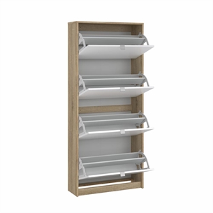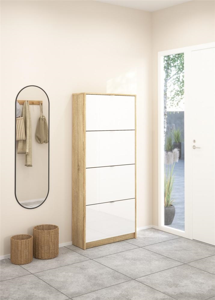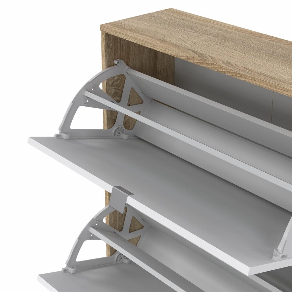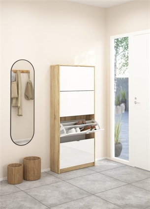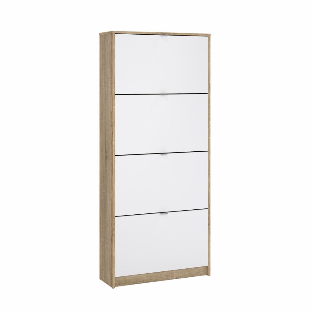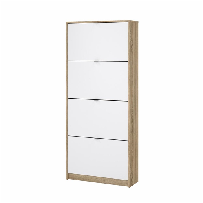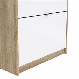 Shoes Skoskab 4 klaplåger med 2 rum - Eg struktur/hvid højglans
