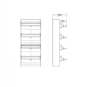 Skoskab med 4 vippelåger er skabt til dig, der ønsker en rummelig og stilren løsning til skoopbevaring. Den gennemtænkte opbygning og den elegante materialekombination gør skoskabet til et praktisk og dekorativt valg i hverdagen.