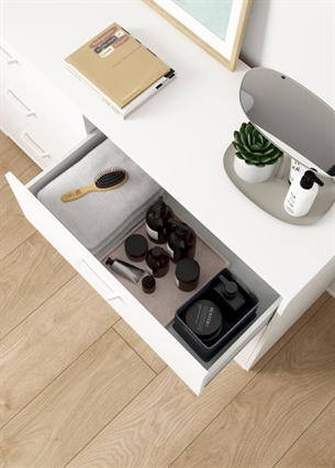 Den dobbelte opbygning gør det let at opdele indholdet efter behov, hvilket er en stor fordel i soveværelset, hvor struktur og overblik er vigtigt i hverdagen.