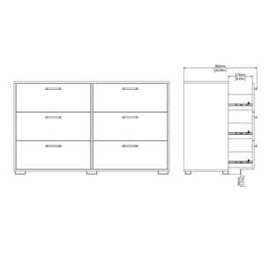 Seks skuffer med rummelig opbevaring