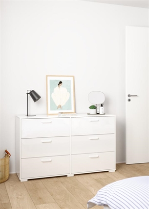 Sofia Dobbelt kommode 6 skuffer - Hvid højglans