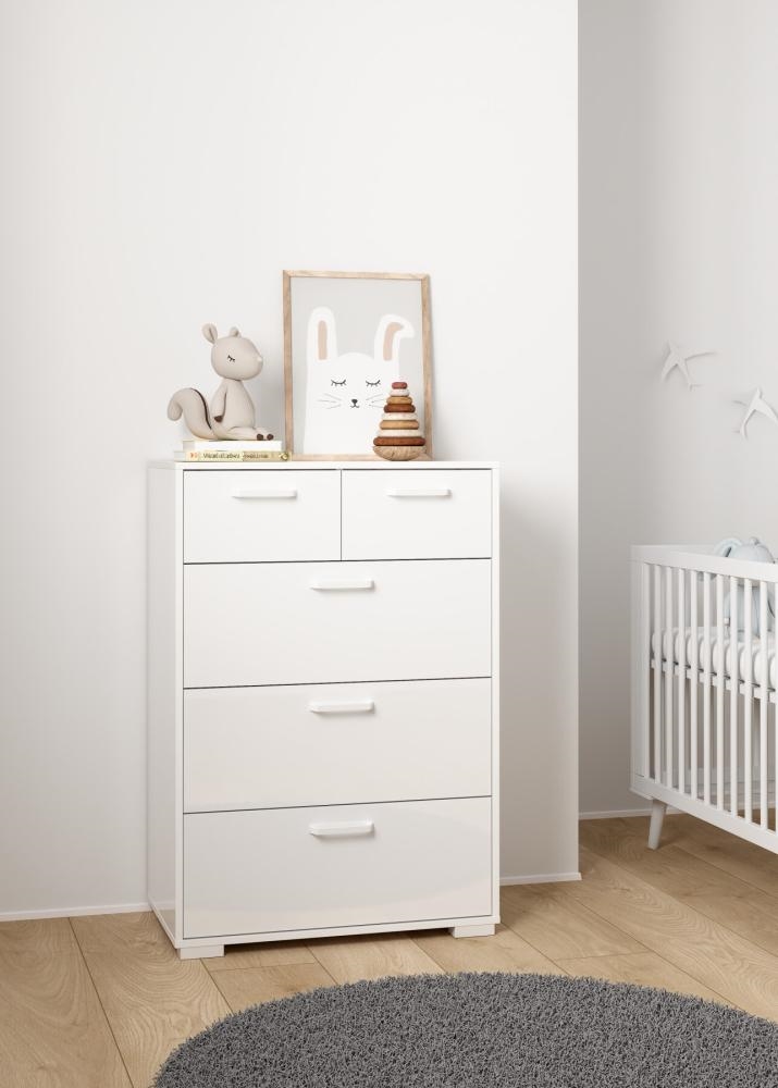 Sofia Kommode 3 +2 skuffer -Hvid højglans