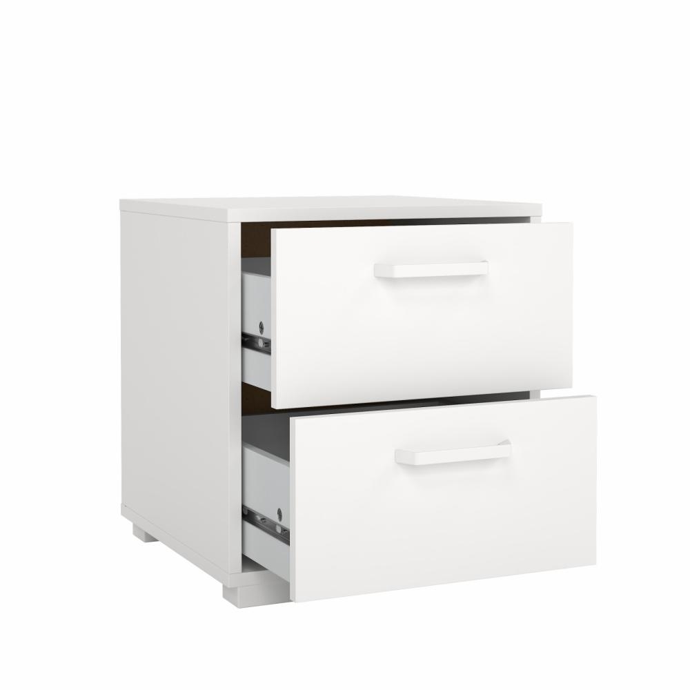Sofia sengebord med 2 skuffer er et stilrent og funktionelt sengebord, der forener minimalistisk design med moderne hverdagsbehov. Med sin hvide finish, rene linjer og velafstemte proportioner passer sengebordet perfekt ind i det moderne soveværelse, hvor enkelhed, ro og funktionalitet er i fokus.