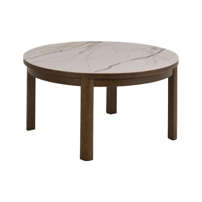 Southampton rundt sofabord er en stilfuld kombination af æstetik og funktion, hvor naturlige materialer og organiske former mødes i et harmonisk design. Med sin polerede keramiske bordplade i en varm cremefarve og et stel i røgfarvet NC-lakeret egefiner tilfører bordet en følelse af eksklusivitet til din stue.