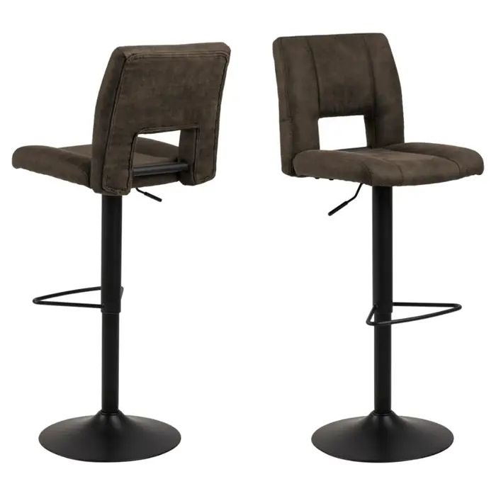 Sylvia Barstol er designet med fokus på moderne æstetik og fremragende komfort. Stolen er beklædt med Preston stof i en elegant antracit farve, der tilfører et sofistikeret udtryk. Stellet er udført i mat sort ru pulverlakeret stål i et karakteristisk trompetdesign, hvilket sikrer en robust og stabil konstruktion.