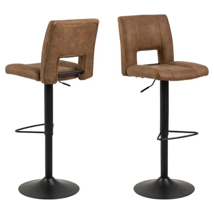 Forestil dig en stilfuld køkkenø eller et moderne barområde, hvor Sylvia barstole skaber en varm og indbydende atmosfære. Den lysebrune polstring tilfører rummet en sofistikeret elegance, mens den justerbare højde og drejefunktion gør stolen både praktisk og komfortabel – perfekt til afslappende øjeblikke over en god kop kaffe eller et glas vin.