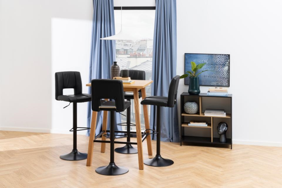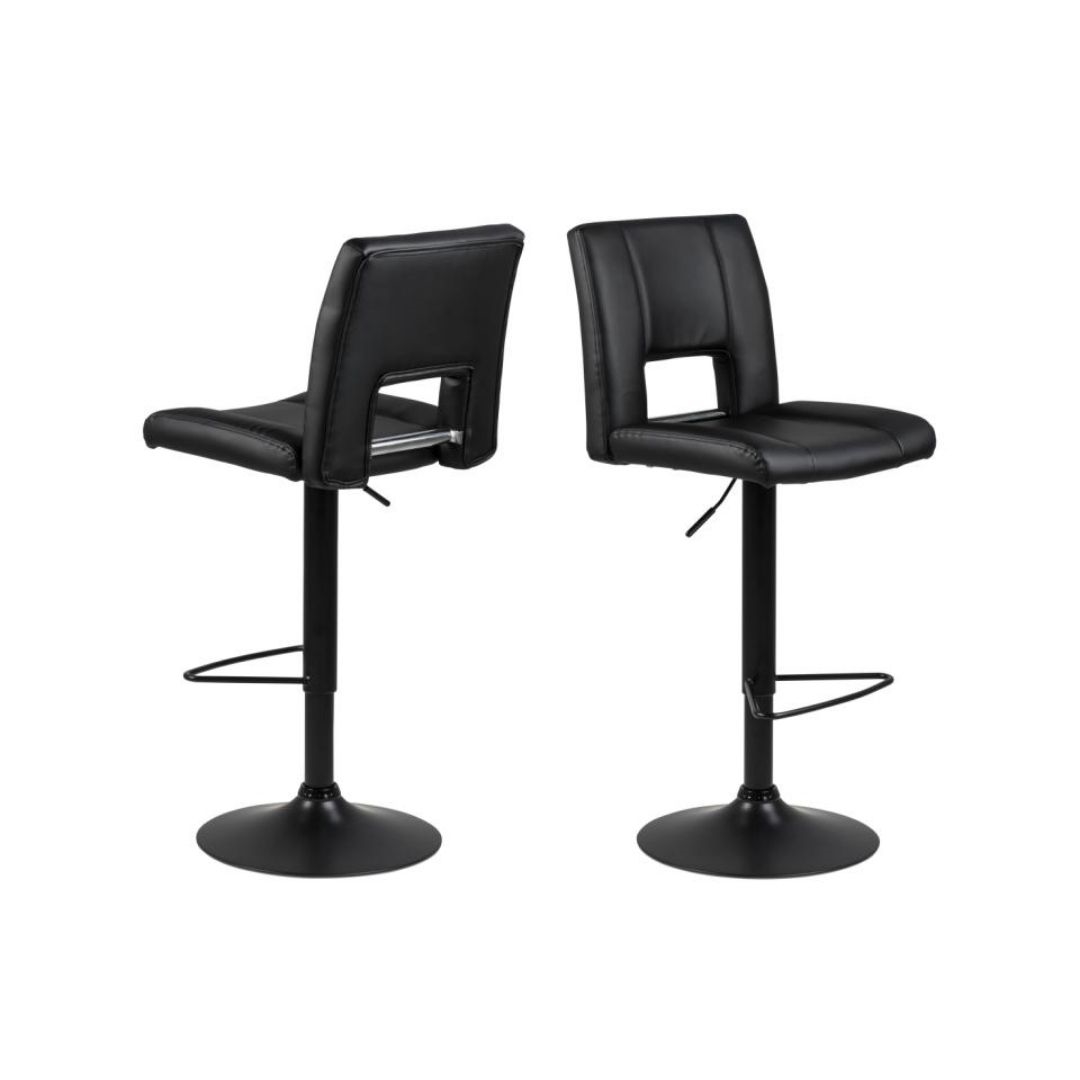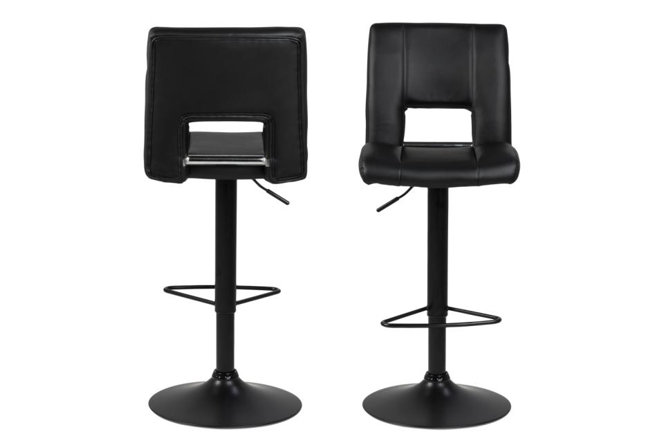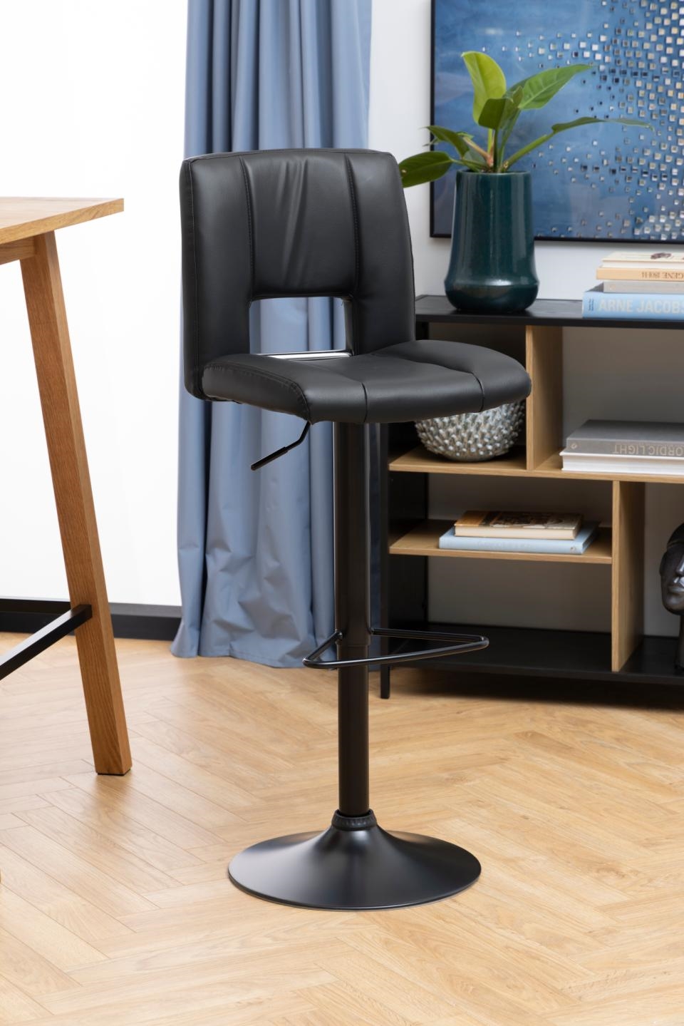 Sylvia barstol i sort PU med drejefunktion er en moderne og funktionel barstol, der kombinerer komfort med et stilrent design. Med justerbar højde og praktiske funktioner er den ideel til både køkkenø og barområde.