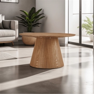 Tango sofabordet tilbyder både funktionalitet og stil. Med sin rummelige størrelse og runde form er det ideelt til større opholdsområder, hvor det kan fungere som et centralt element. Den naturlige egfiner finish giver bordet et tidløst og elegant udseende, der nemt kan integreres i forskellige indretningstemaer. Den centrale benstruktur sikrer stabilitet og tilføjer et moderne touch til dit hjem.