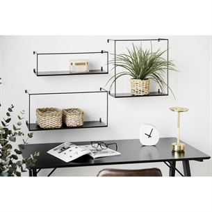 Forestil dig disse smukke væghylder hængende på din væg, fyldt med bøger, planter eller andre dekorative genstande. Den sorte farve og de enkle linjer tilfører dit hjem et moderne, stilfuldt og funktionelt element, der samtidig hjælper med at organisere og dekorere dine rum.