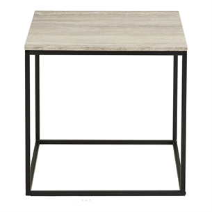 Vita hjørnebord – kvadratisk bord i travertin look med sort stel (45 × 45 × 45 cm)