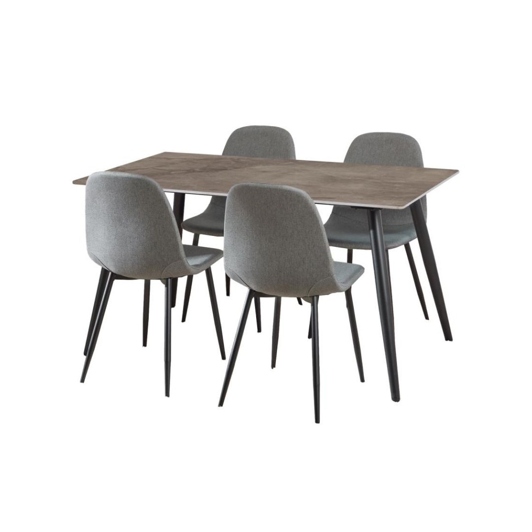 Wicklow spisebordssæt, Top grå Batis poleret keramik inkl. 4 mørkegrå Nesia stole