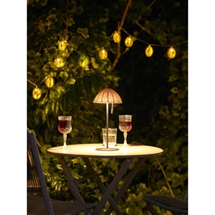 Lampen er udviklet til udendørs brug og er derfor velegnet til både hyggelige aftener på terrassen og som dekorativ belysning i haven eller på altanen.