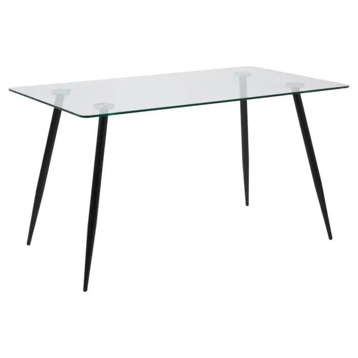 Wilma Spisebord er et rektangulært spisebord, der kombinerer et elegant og moderne udtryk med materialer af høj kvalitet. Bordpladen er fremstillet af klar hærdet glas, som både er robust og let at rengøre. Dette glas er designet til at modstå daglig brug og giver et let og elegant præg til bordet. Stellet er udført i mat sort pulverlakeret stål, som sikrer en stabil og holdbar konstruktion, samtidig med at det tilføjer et moderne og industrielt udtryk.