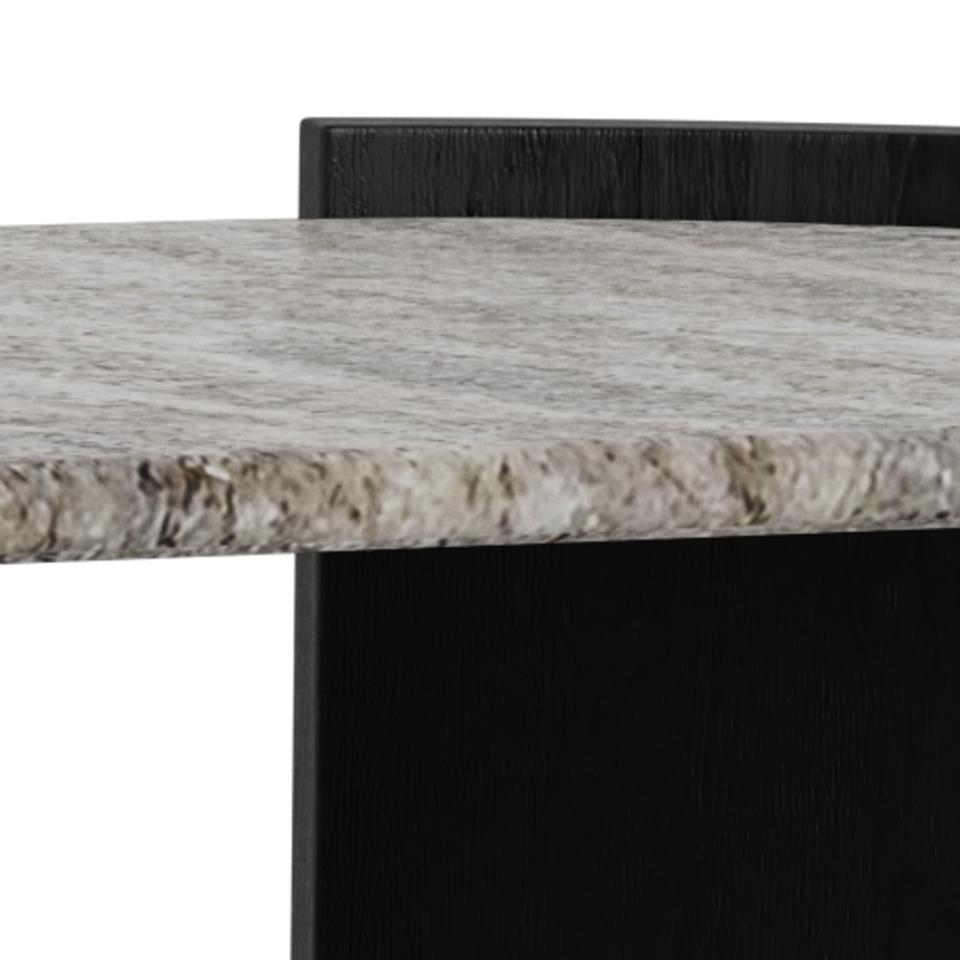 Stellet er fremstillet i sort sandblæst og AC lakeret mangotræ, som giver et råt og moderne udtryk. Den sandblæste overflade fremhæver træets struktur og skaber en flot kontrast til den glatte marmortop.