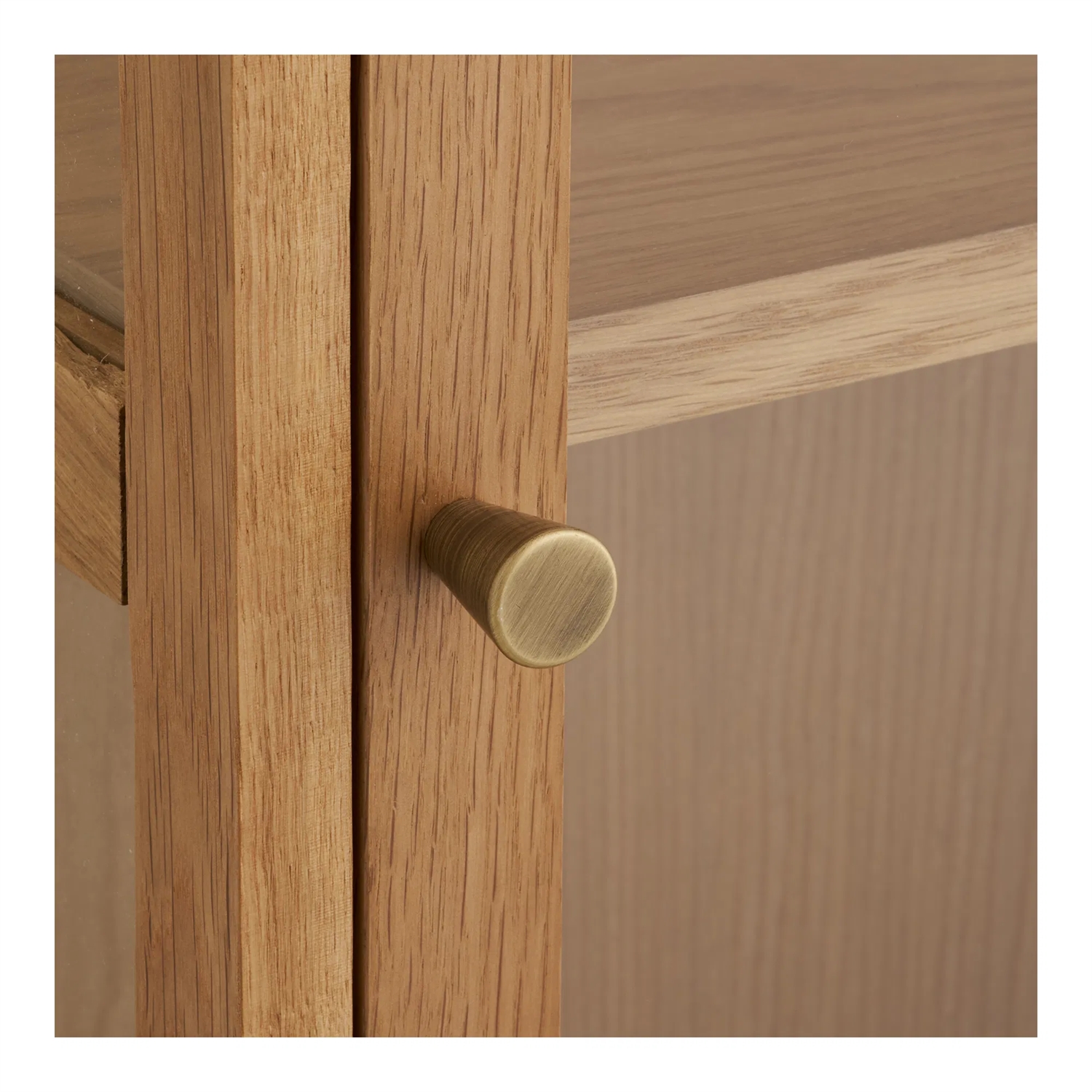 Zamora vitrinen er fremstillet i en solid kombination af eg, egefiner og MDF, hvilket sikrer et stabilt og gennemført kvalitetsudtryk. Træets naturlige struktur tilfører varme og karakter og gør vitrinen nem at integrere i mange typer indretning.